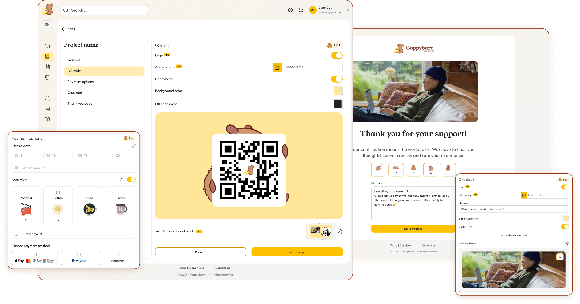 Followers can support you easily using various payment methods, including credit cards, digital crypto wallets, and other secure online options. Cappybara ensures a smooth transaction process for your supporters.